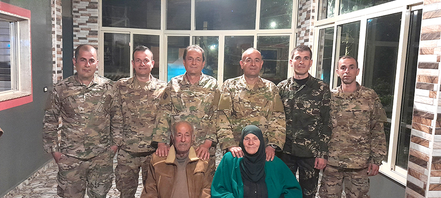 قصدناهم وكان في استقبالنا الوالد والوالدة و٣ من العسكريين، ومائدة تزخر بالأطايب، «تشريفكم عزيز جدًا» تقول أم غياض والفرح يفيض من عينيها لرؤيتنا في البزة العسكرية. «يا هلا بالجيش، تفضلوا، تتناولون الفطور أولًا، ومن ثم نتحدّث». ننصاع لكرمها وطيبتها ونتذوق السمنة مع العسل واللوز، اللبنة البلدية، البيض المقلي، الشنكليش، الزعتر البلدي، والمكدوس…