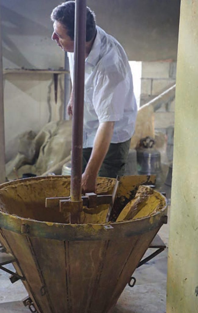 تبقى الخطوات الأهم في عملية صناعة الأجراس في اللمسات التي توضع على القوالب للحصول على الجرس بشكله النهائي، فيتم تسخين القوالب على بؤرة ترابية لإزالة الرطوبة منها، إذ يجب أن تكون ساخنة عند صب المواد الأولية.