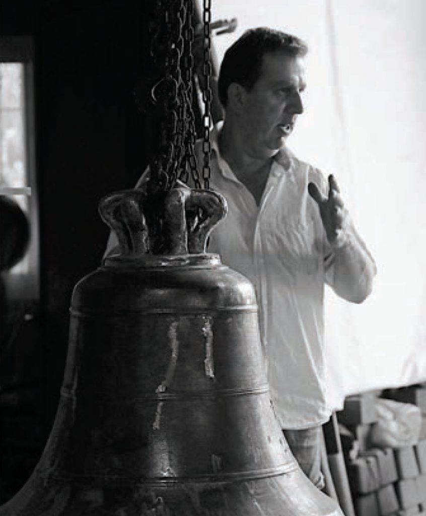 أخذتنا رغبتنا في التعرّف على صناعة الأجراس إلى مشغل المعلّم نفّاع نفّاع في بيت شباب، حيث أخبرنا بشغفٍ عن المراحل التي يمر بها تصنيع الجرس. يقول المعلّم يوسف: «تنطلق صناعة الأجراس مما يُسمى الحوارة وهي نوع من التراب موجود في البلدة وفي القرى المجاورة، وأهمّ ميزاته أنّه يحتمل حرارة عالية جدًا. بعد استخراجه من الأرض، نغربل التراب ثمّ نعجنه مع الماء وشعر الماعز والتبن حتى تتماسك الخلطة جيدًا ما يمنع حدوث التشققات، وعندما ننتهي من العجينة نبدأ ببناء القوالب».
