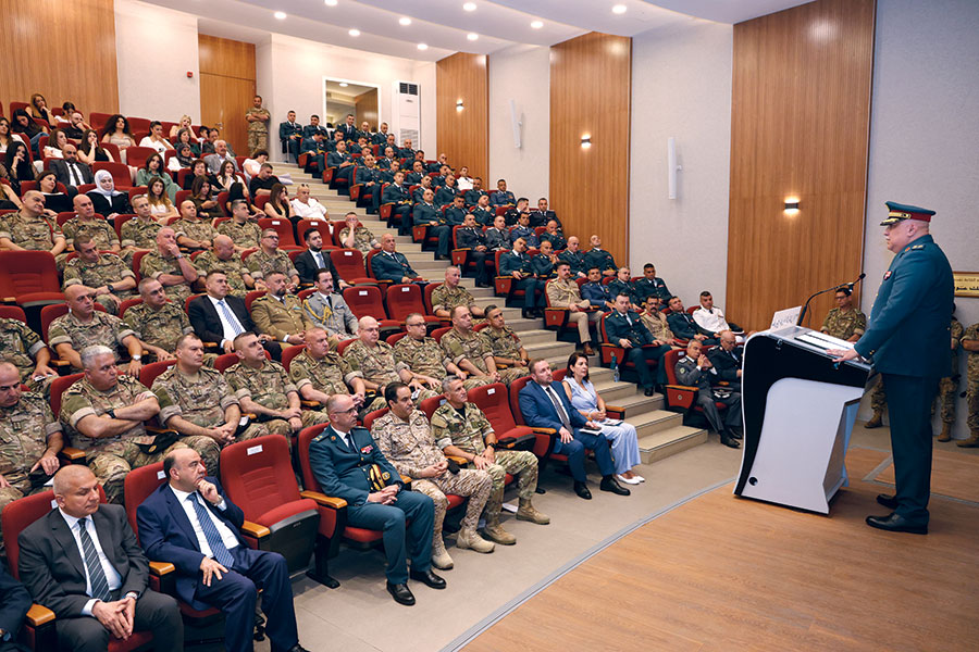 بعد توزيع الشهادات على المتخرجين، ألقى كلٌّ من طليع دورة الأركان وطليع الضباط العرب وقائد الكلية كلمة بالمناسبة. ثم ألقى رئيس الأركان كلمة جاء فيها: «ندرك جميعًا خطورة المرحلة على منطقتنا، وكثرة المتغيرات والتعقيدات في المشهد الجيوسياسي، والغموض الذي يكتنف مستقبل المنطقة مع تصاعُد حدة النزاعات وتَوسُّعها. هذا الواقع يرخي بثقله على لبنان من نواحٍ مختلفة، بخاصة مع استمرار العدو الإسرائيلي في اعتداءاته على أمننا وسيادتنا، عقب عدوانه الأخير وما نتج عنه من خسائر بشرية ومادية فادحة. بناء عليه، تبذل المؤسسة العسكرية قصارى جهدها لتنفيذ مهماتها، وتعمل على إعادة الاستقرار في الجنوب بالتعاون الوثيق مع قوة الأمم المتحدة المؤقتة في لبنان – اليونيفيل ضمن إطار القرار 1701».