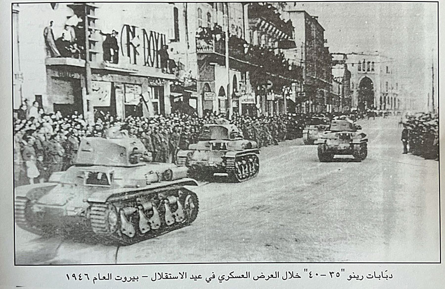توافرت للجيش اللبناني في هذه الفترة دبابات رينو الفرنسية Renault FT-17 et FT-18، ودبابة رينو المعدّلة سنة 1940 R35، ودبابة AMX13، ودبابة شيرمن الأميركية Sherman Tank M4 A1، ودبابة شاريوتير البريطانية Charioteer أو، أو دبابة م 41 الأميركية M41 Walker Bulldog. كما امتلك الجيش اللبناني مصفحات ستكهاوند الأميركية Staghound T17، والعربة المدرّعة الأميركية سكاوت كار Scout Car، والمصفحة الإنكليزية مارمون Marmon-Herington Armored Car MK11، وناقلة الجند البرمائية الأميركية الصنع 59M، والمصفّحة ج. أم. سي .GMC واقتصرت أسلحة الخيّالة على السيف، والبندقية الفرنسية موسكتون Mousqueton Berthier.
