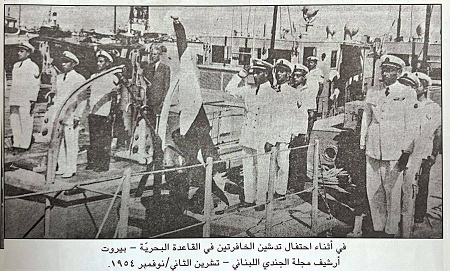 أنشأت قيادة الجيش سلاح البحرية بتاريخ 1 شباط 1955، وقد تشكّل من قاعدة بحرية، وزوارق حربية (3 vedettes de 20m et une de 10m) تمركزت في قاعدة بيروت البحرية – مرفأ بيروت. وخلال شهر تموز 1954 سافرت بعثة عسكرية لبنانية إلى ANTIBES الفرنسية حيث الشركة التي صنّعت خافرتين، فاستلمهما الجيش وأطلق عليهما اسمَي «بيبلوس» و«صيدون». وفي العام 1955 استلم الجيش الخافرة «بيروت»، كما استلم في العام 1958 مركب إنزال أميركي طوله 40 مترًا أطلق عليه اسم «صور».
