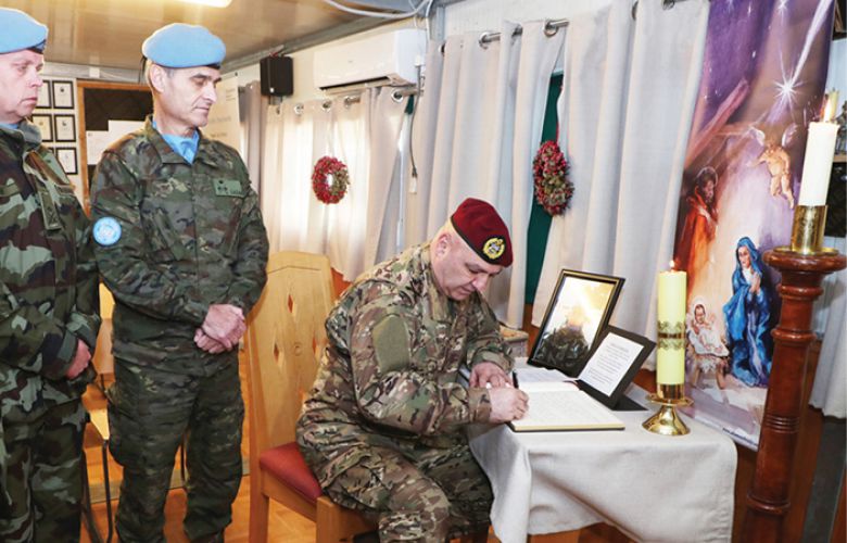 كما أشاد العماد عون بتضحيات عناصر وحدات اليونيفيل التي تعمل بشكلٍ وثيق مع الجيش اللبناني للحفاظ على الأمن والاستقرار في الجنوب، وجدد التأكيد أنّ التعاون مستمر بين الجيش واليونيفيل بوصفها شريكًا استراتيجيًا أساسيًا، وذلك لتطبيق القرار ١٧٠١.