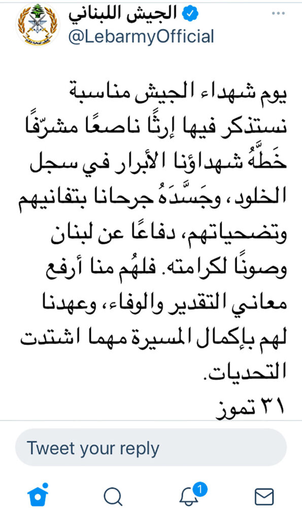 في ظل العلم مرفوعًا، جرت الاحتفالات إحياءً لذكرى الشهداء في مقر عام الجيش – اليرزة، والمناطق العسكرية ومقرات القطع والثكنات. حمل العسكريون إلى نصب الشهداء أكاليل الزهر، وبينما شاركت الموسيقى مضفية على المناسبة المزيد من الوقار، حضر قسم من الاحتفالات أهالي الشهداء مؤكدين أنّهم والمؤسسة عائلة واحدة.