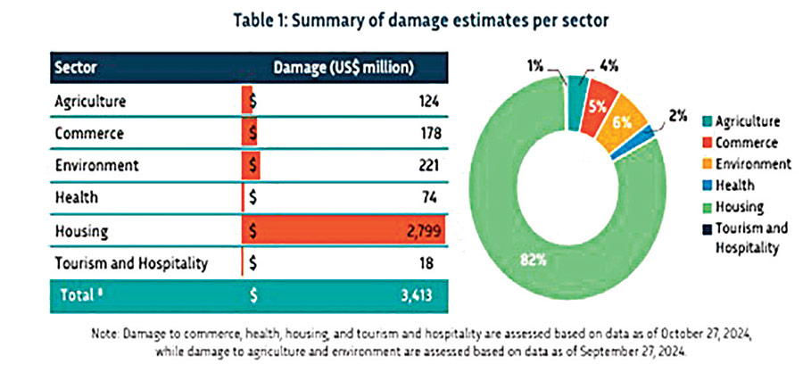 إنّ خسائر العدوان أكبر بكثير من المتوقّع، ومن المنتظر أن تتجاوز أرقام الخسائر والأضرار المباشرة في البنى التحتية تقديرات البنك الدولي لشهر أكتوبر 2024 والتي وصلت إلى نحو 8.5 مليار دولار1، أي ما يعادل نصف الناتج المحلي الإجمالي. وتكشف هذه الأرقام شدّة الحرب وخطورتها على الآفاق الاقتصادية، وعلى قدرة الدولة على تقديم الخدمات الأساسية. في قطاع الإسكان وحده، تسببت الحرب في تدمير أو تضرر أكثر من 100 ألف مسكن بشكلٍ كامل أو جزئي، وبتكلفة قد تصل إلى 3.2 مليار دولار. أمّا الخسائر الاقتصادية فقُدّرت بـ 5.1 مليار دولار أميركي، وهذه تقديرات أولية مرشّحة للارتفاع بعد إجراء مسوحات أكثر دقّة.