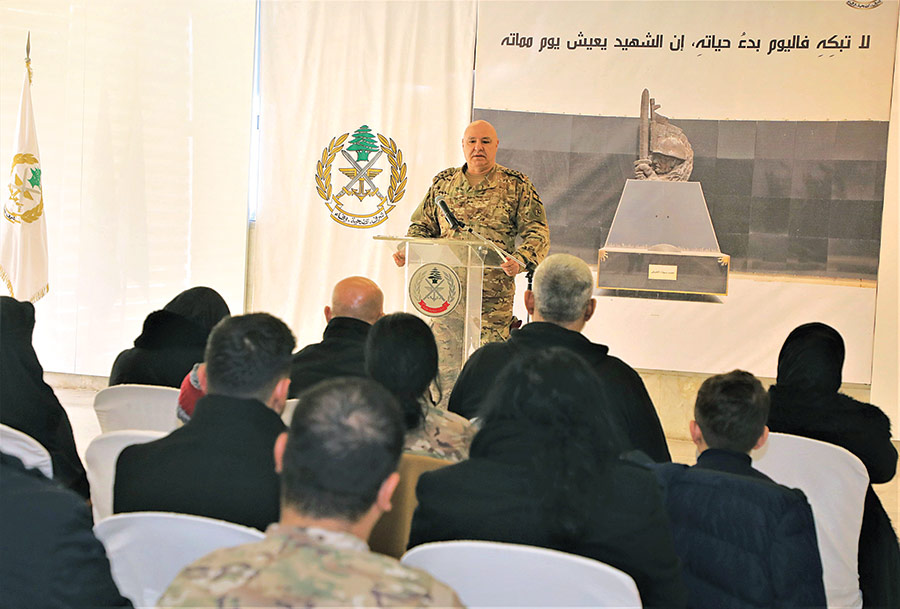في حضور قائد الجيش العماد جوزاف عون وعدد من الضباط، أُقيم في مبنى قيادة الجيش حفل تكريمي لعائلات العسكريين شهداء ساحة الشرف الذين استشهدوا في الجنوب خلال العدوان الإسرائيلي الأخير على لبنان.