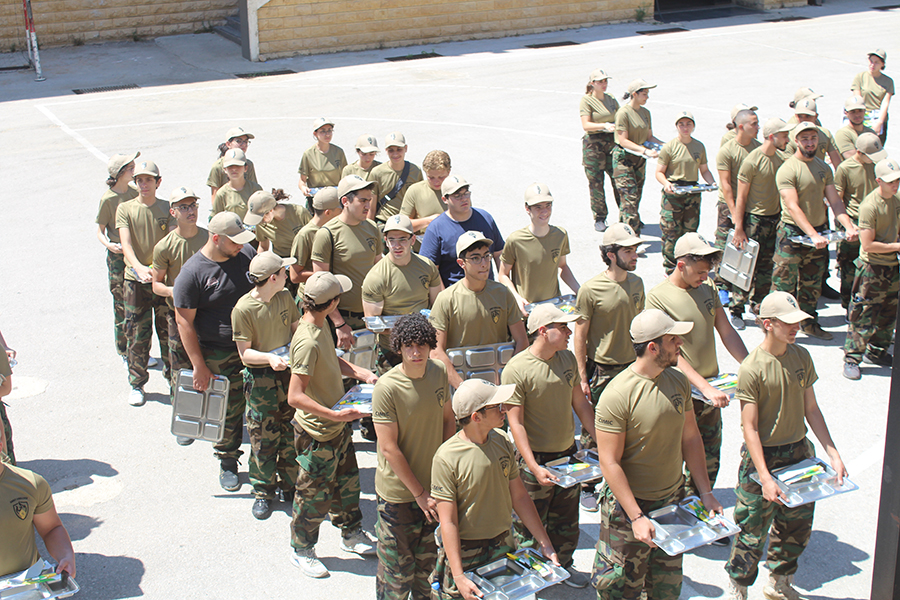 تسلّم الطلاب البزّات «العسكرية» المعدّة خصيصًا لهذا المخيّم، قبل أن يتوجهوا إلى الغرف التي جُهّزت لهم. خلعوا لباسهم المدني ليخرجوا بعد دقائق فخورين بالزي الموحّد الذي وضع حدًا فاصلًا بين حياتهم كمدنيين وما هم مقبلون على اختباره كـ«عسكريين» لأيام.